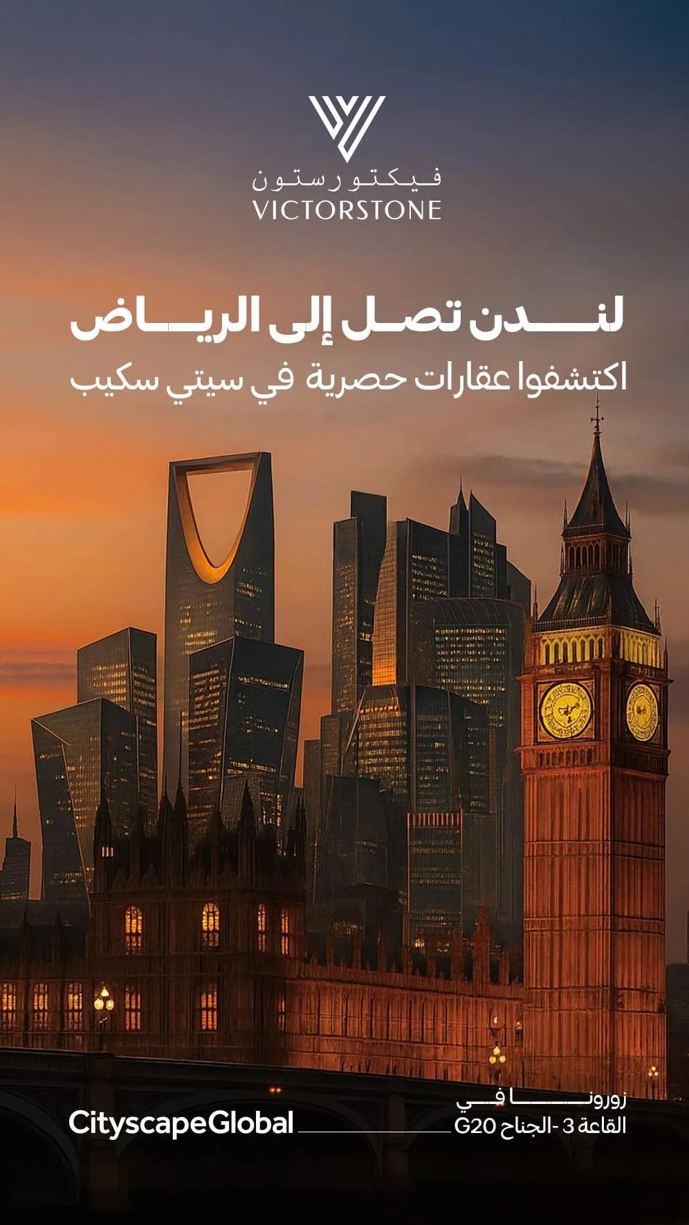 At Cityscape, Victorstone will showcase the largest collection of London apartments, featuring premium homes in Chelsea, Battersea, Nine Elms, and Canary Wharf, along with exclusive residential projects in Riyadh through our partnership with MENA Development.