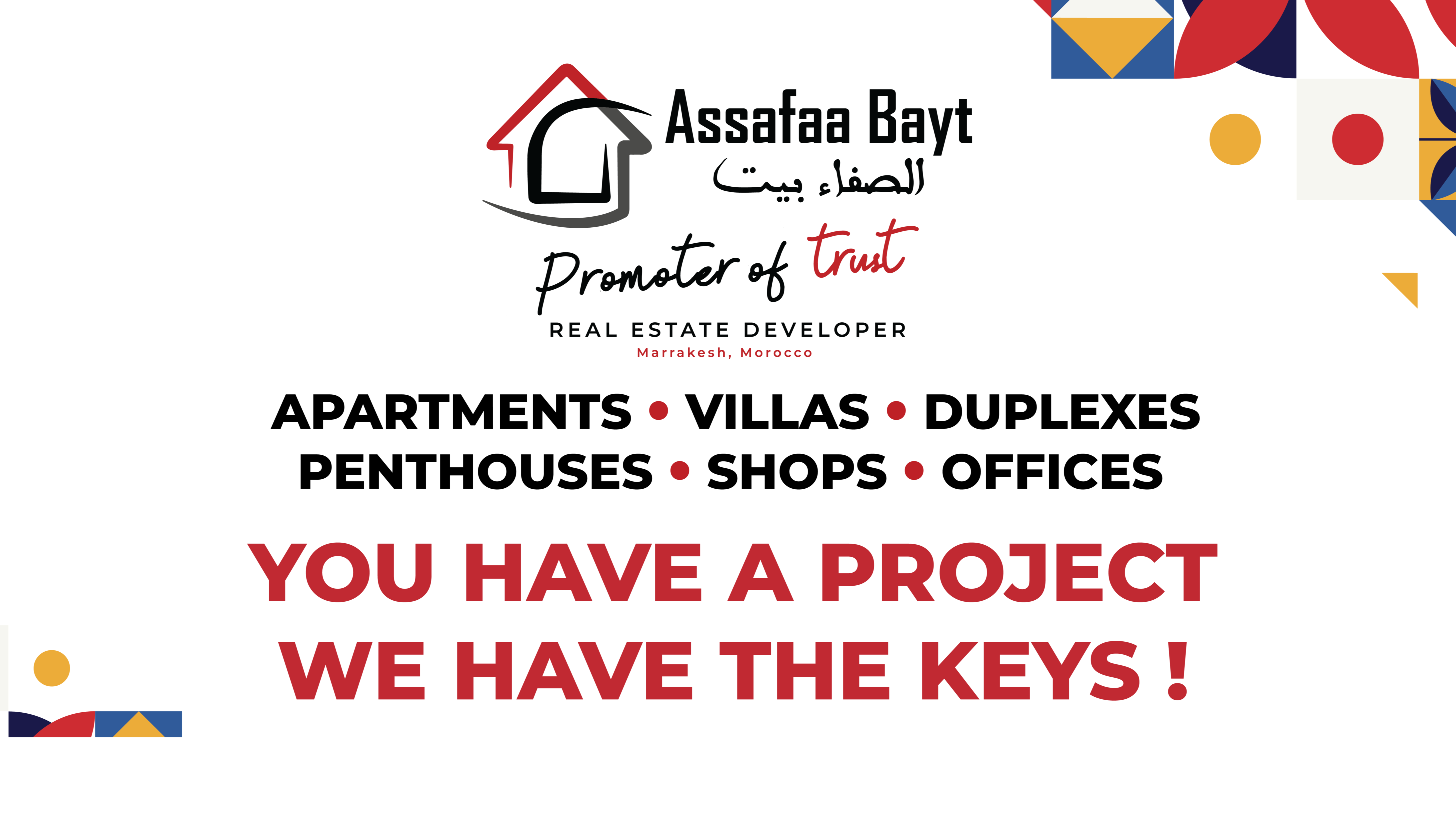 Assafaa Bayt Group, expert in all areas of real estate is a leading actor in real estate development in the Marrakech-Safi region in Morocco.